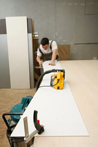 Фрезеровка столешницы Эггер и других изделий производится ручным фрезером. Это позволяет мастеру получить желаемый контур с максимальной точностью и без сколов.